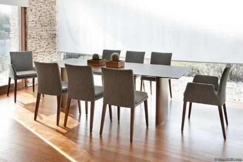The Ensemble Armchair is from a seating series designed by the German design studio of Martin Ballendat. The series is comprised of side chairs and armchairs that use either steel or wood bases and rectilinear seat design. The Ensemble uses an injected foam seat that is very comfortable and makes for an excellent dining chair.